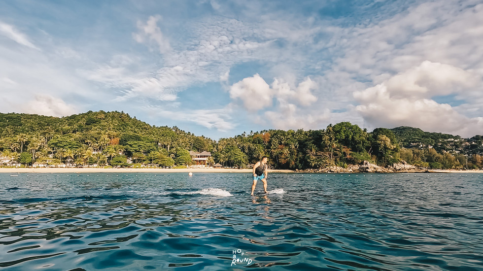 เริ่มที่ eFoil กันก่อนก็แล้วกัน เจ้ากระดานโต้คลื่นไฟฟ้าที่ไม่ง้อคลื่นนี้ เราสามารถจะนั่งหรือจะยืนก็ได้ และมีรีโมทให้เราปรับความเร็วได้ตามต้องการ และหากชำนาญมากๆก็สามารถบินเหนือน้ำได้ด้วยนะครับ แต่สำหรับครั้งแรกนี้ของเรา แค่ยืนบนบอร์ดได้เราก็พอใจมากๆแล้ว พอคาดหวังต่ำเราก็มักจะมีเรื่องให้เราเซอร์ไพร้ส์ตัวเองได้เสมอและในครั้งแรกนี้ นอกจากเราจะยืนได้แล้ว เรายังตีวงเลี้ยวในท่ายืนได้ด้วย 55555 ภูมิใจมากครับ ต่อให้มันอาจจะเป็นแค่การฟลุ้คก็ตาม เรียกได้ว่าสำเร็จเกินคาดครับ